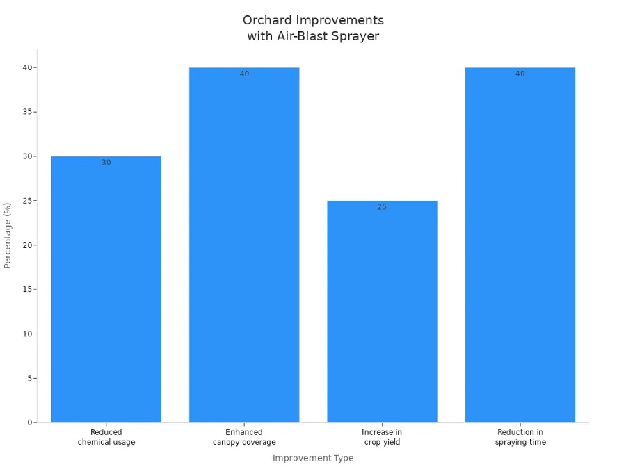 Pesquisas mostram que o design do seu pulverizador faz diferença. Pulverizadores com barra vertical, como os encontrados em modelos avançados, proporcionam melhor cobertura e controle de pragas mais eficaz. Ao usar um pulverizador de jato de ar, você obtém melhor controle de insetos e árvores mais saudáveis com menos esforço.