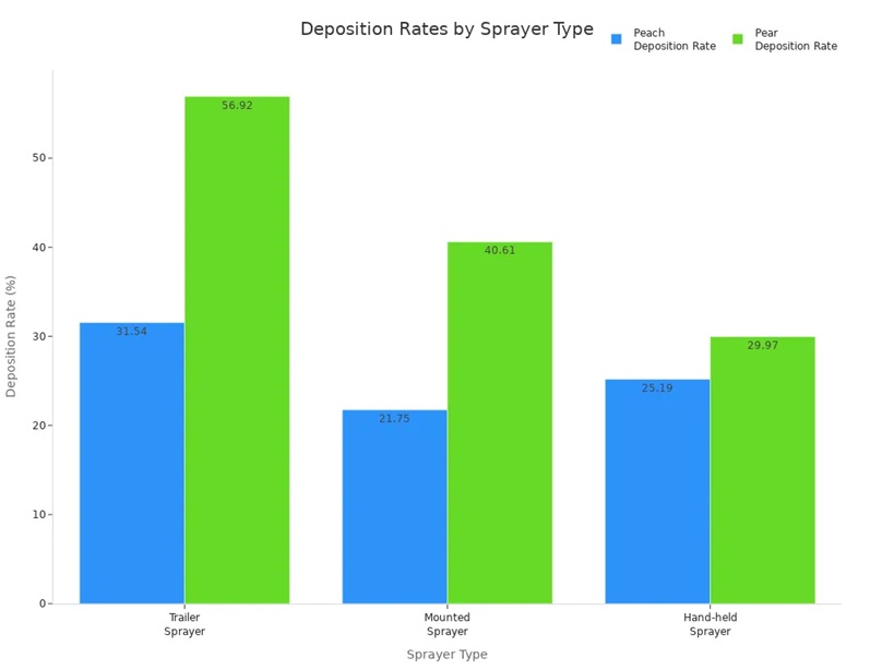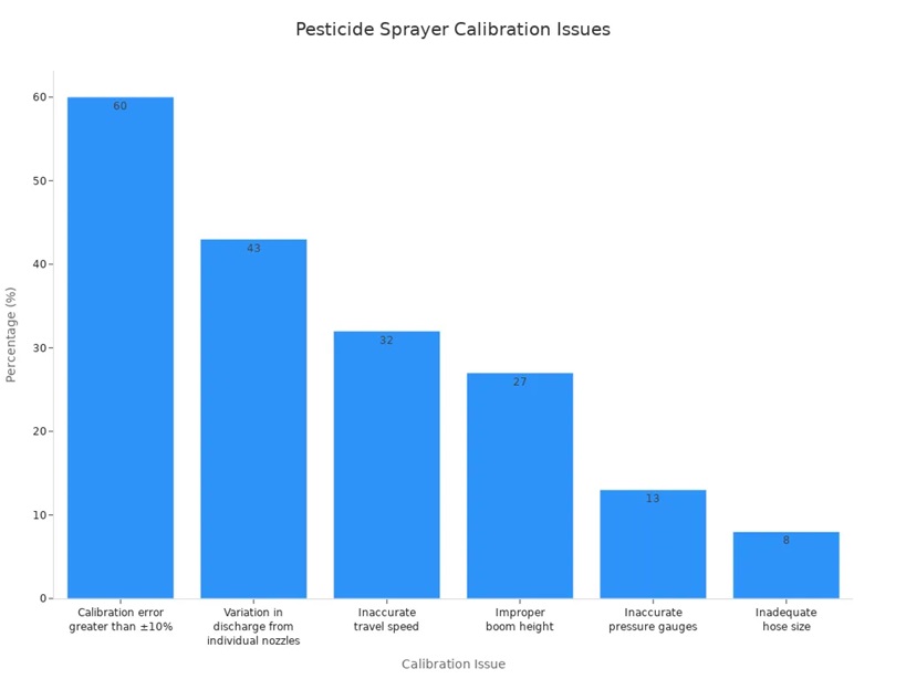 Você pode melhorar a eficácia dos pesticidas na cobertura do seu pomar usando um pulverizador de ar comprimido para pomarConcentre-se na configuração, calibração, sincronização e manutenção. Pequenas alterações na escolha do bico, nas configurações de ar e na calibração ajudam a obter melhores resultados de pulverização. Estudos mostram que erros de calibração maiores que ±10% afetam 60% das pulverizações. Alterações na vazão do bico afetam 43% das pulverizações. Consulte o gráfico abaixo para obter mais informações: