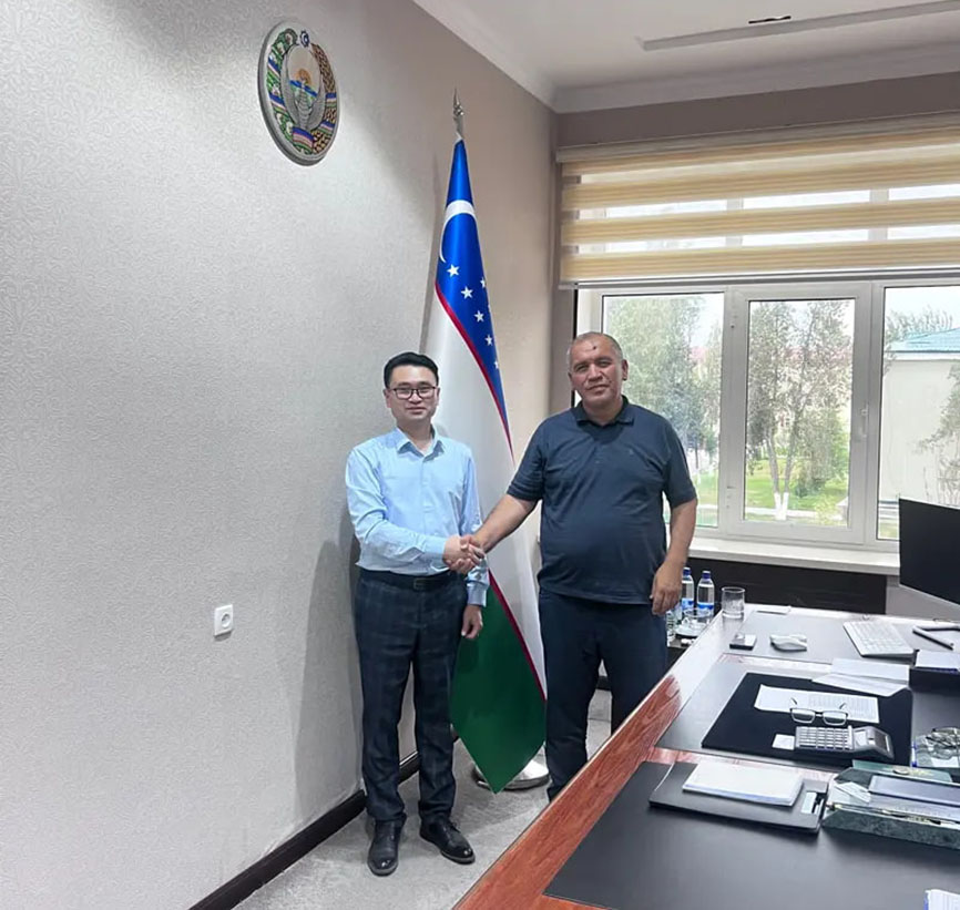 Em 29 de maio, o Dr. Lertin, diretor de vendas da SINOSO, se reuniu com o prefeito da cidade de Gagarin, região de Jizzakh, Uzbequistão, para apresentar as tecnologias de agricultura inteligente da empresa, com foco no robô de pomar SOROB para proteção avançada de plantas.
