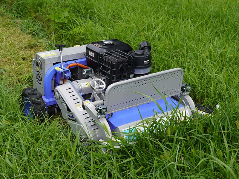 Triturador de grama com controle remoto de quatro rodas, amplamente utilizado em campos, pomares, agricultores. Remoção de ervas daninhas em campos, cinturões verdes, gramados, etc.