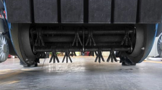 - O uso de pneus de borracha sólida de grande diâmetro, mais resistentes ao desgaste, mais duráveis.